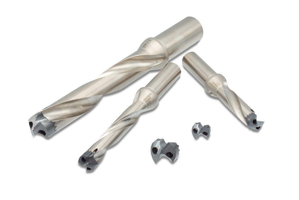 近年来,在高效钻孔加工中,硬质合金整体式钻头的应用日益广泛,但却面临着高成本这一大课题,因此能够大幅降低刀具成本的刀头可换式钻头备受关注。随之而来的,市场要求刀头可换式钻头具备与硬质合金整体钻头同等的孔径精度、更高的生产效率以及更长的刀具寿命。