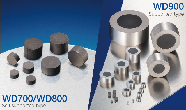 The WD800 series(Heat-Resistant type) are self-supported thermally stable blanks. These blanks are especially suited for applications which require high temperature in mounting and need high heat resistance in drawing.