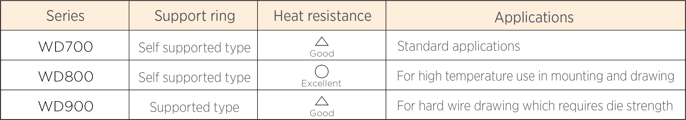 SUMIDIA WD has 3 series such as with support-ring, with heat resistance.