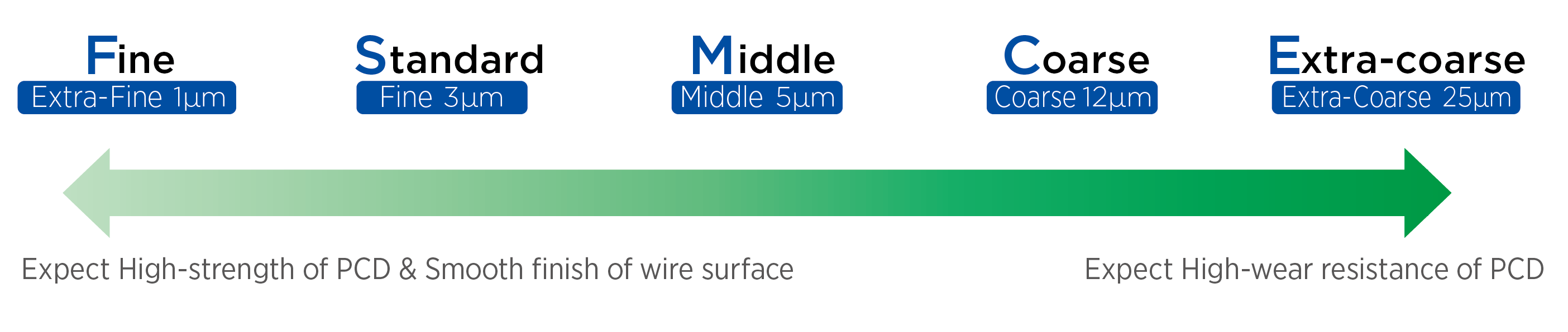 Middle (Middle:5μm) It is effective for a wide variety of applications offering high finish with good wear resistance.