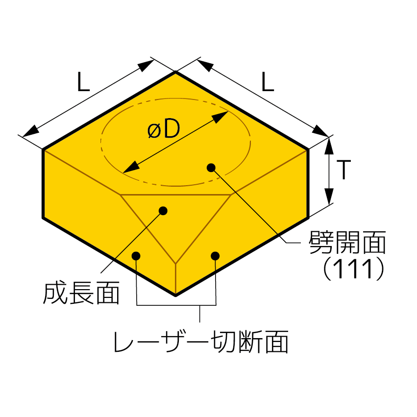 - 上下面に(111)を採用、楕円摩耗を防ぐことができるため、良好な真円度を保つことができます。