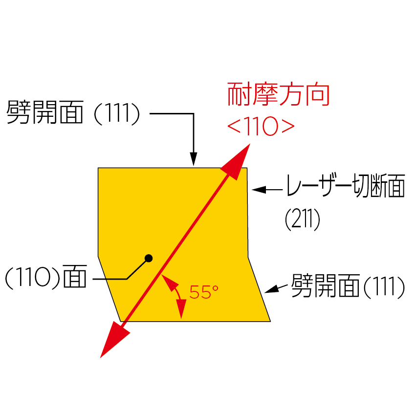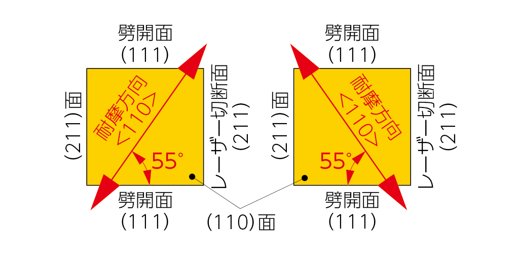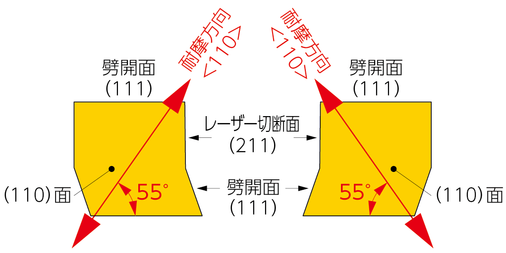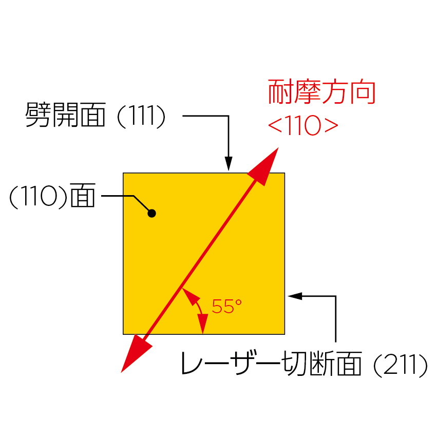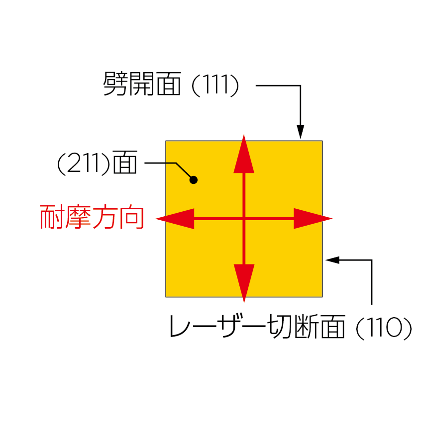 耐摩耗性の高い(110)面のため、<111>方向で使用しても十分長寿命