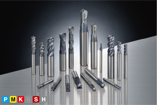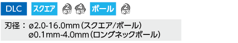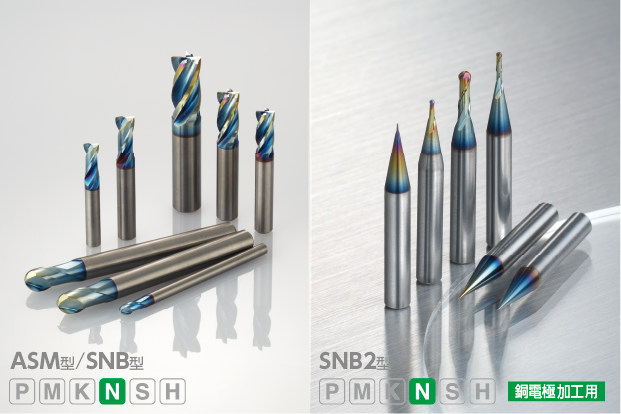 DLCの超平滑なオーロラコート技術で溶着が少なく、仕上げ面良好で切削抵抗が小さく、高送り切削や低剛性ワークの加工が可能。ロングネックボールエンドミルSNB2型もラインアップし銅電極加工用としても最適