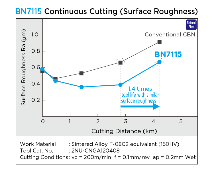 Achieves high-effciency machining of sintered alloy with a standard + 3 types of cutting edge variations