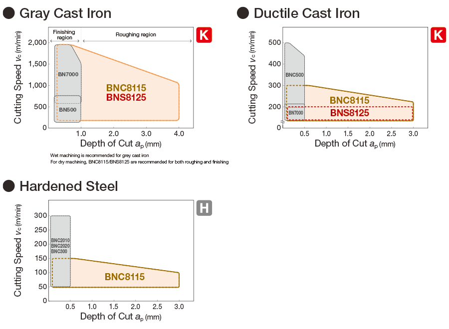 CBN Grades for Cast Iron / Sintered Alloy Machining- K