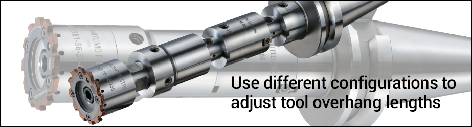 Modular extension arbor combined with a shank with run-out adjustment mechanism provides a higher degree of freedom for tool overhang.