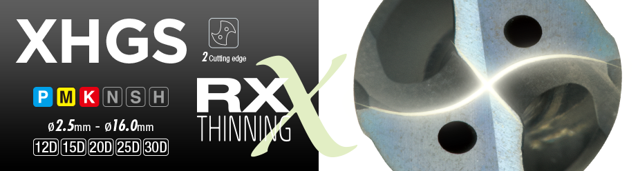 Utilizing a special “RX-thinning” profile that reduces cutting forces during high efficiency drilling