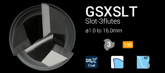 3-fluted slot endmill (1.5D) optimizes the flute profile to reduce cutting force.