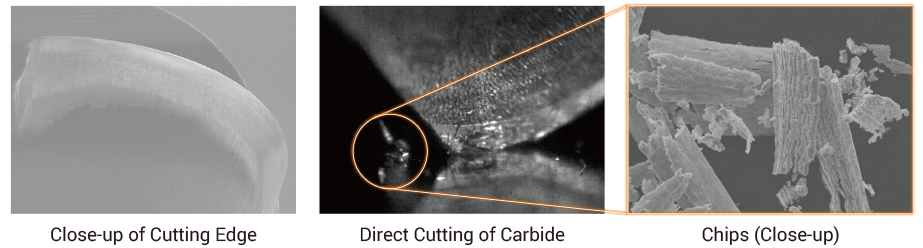 The NPD series achieves direct mirror finishing of carbides, which is impossible for existing single-crystal or polycrystalline diamonds, by utilizing a harder nano-polycrystalline diamond cutting edge.
