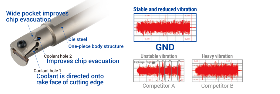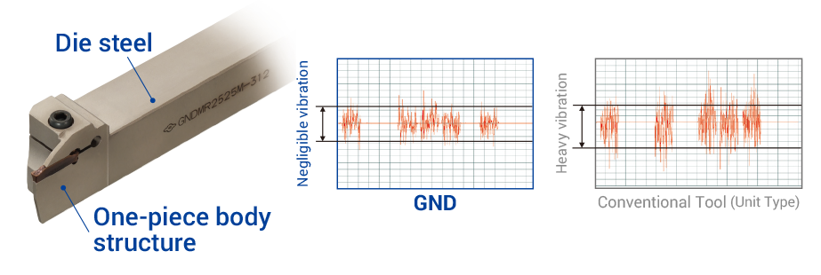 High rigidity design reduces chattering up to 30% better than conventional tools.