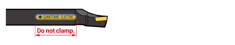 Clamping on labeled portion may prevent the tool from working correctly (due to the built-in anti-vibration mechanism). Therefore, minimum tool overhang should be 3.5D.