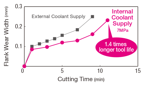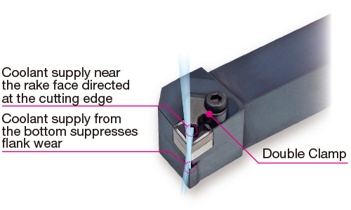 ● Suppresses flank wear with additional coolant supply to the flank face