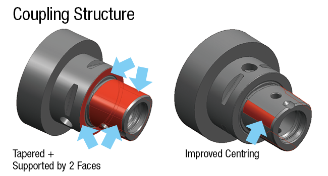 Two surface restriction by 1/2 polygon taper and the end face offer High rigidity.Two surface restriction by 1/2 polygon taper and the end face offer High rigidity.