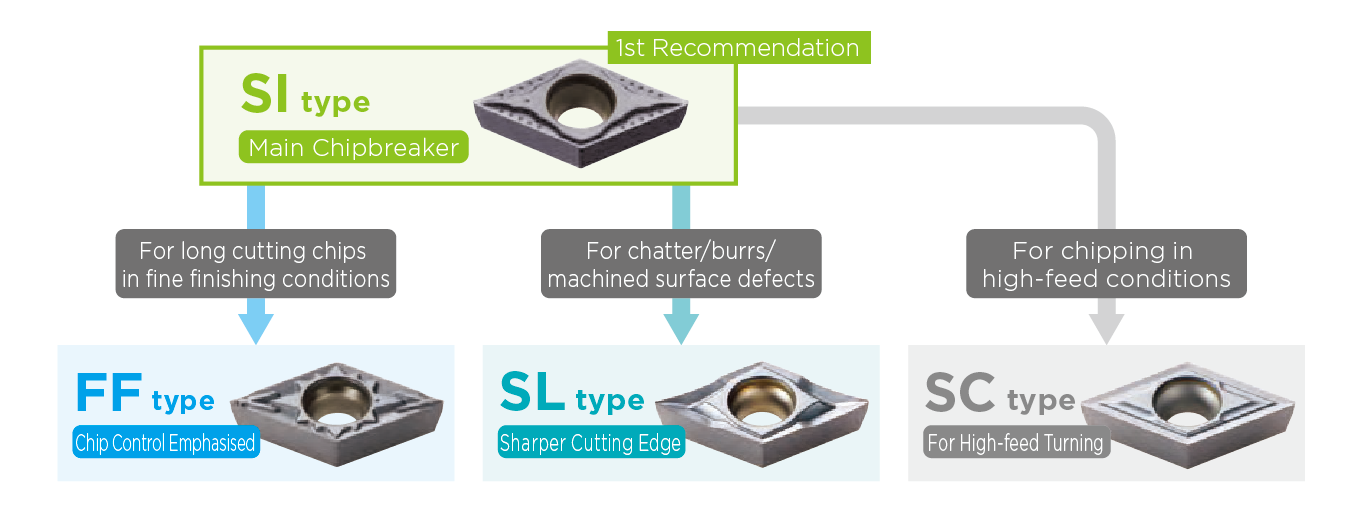 ・FF type now available as a series, focusing on reliable chip control in fine cutting