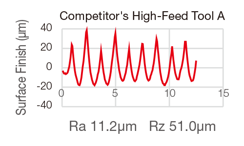 Even at high feedrates of 2.0mm/t or more, a reasonable surface finish can be attained without a wiper insert.