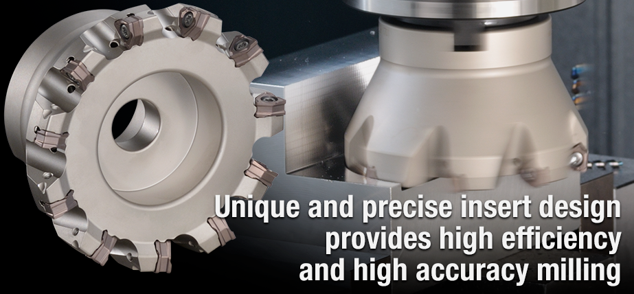 Unique shaped, economical double-sided precision insert provides high efficiency and high accuracy milling