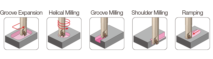 Designed for machining at large ramping angles, coupled with a selection of corner radiuses, makes it applicable for a variety of applications including titanium structural parts