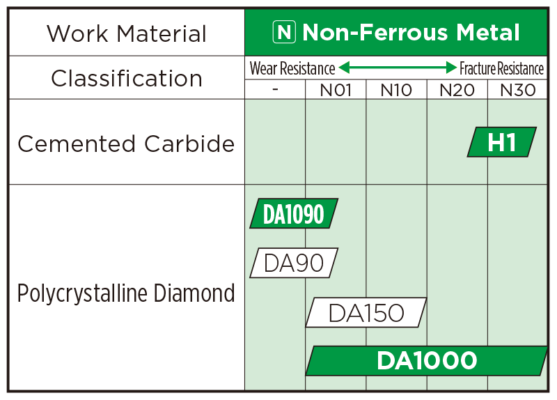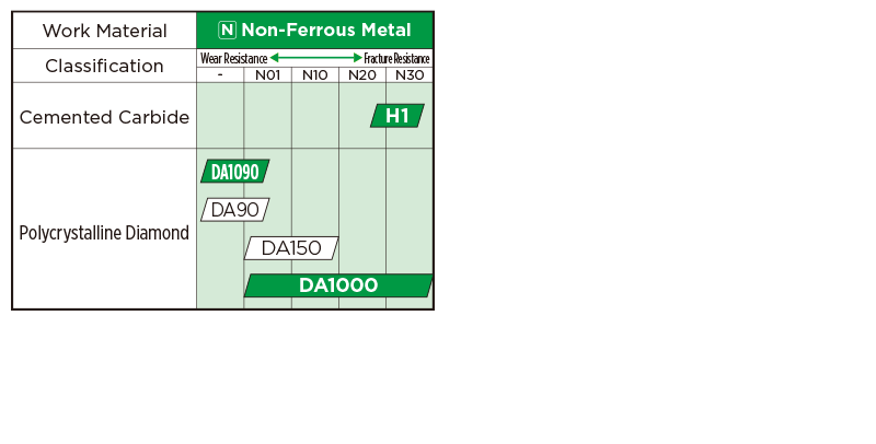 High-speed, high-efficiency grade with great high-temperature strength, which realises excellent wear resistance in high-efficiency machining