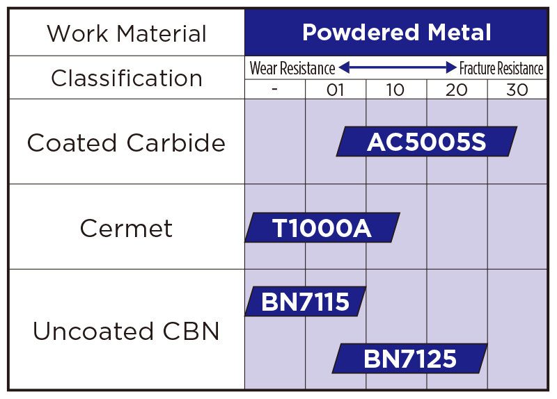 A general-purpose cermet made from hard grains with different grain sizes, delivering functionality that provides an excellent balance of wear resistance and toughness, along with good surface finish quality