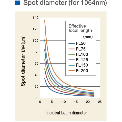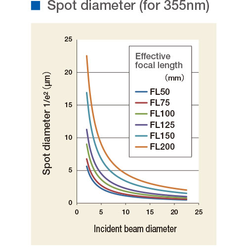 An aspheric lens realize smaller spot diameter by larger input beam diameter.